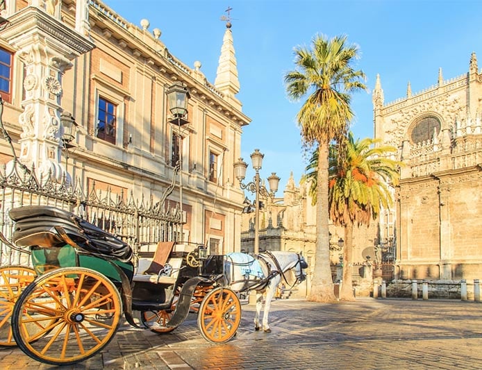 Sevilla, met het imposante plein Plaza de España en de kathedraal die een van de grootste ter wereld is, is een bezienswaardigheid op zich. Vergeet ook niet het Koninklijk Paleis van Sevilla (Real Alcázar) en Metropol Parasol, ook bekend als Las Setas te bezoeken. Loop door de charmante oude wijk Santa Cruz en bezoek een van de vele flamenco shows.